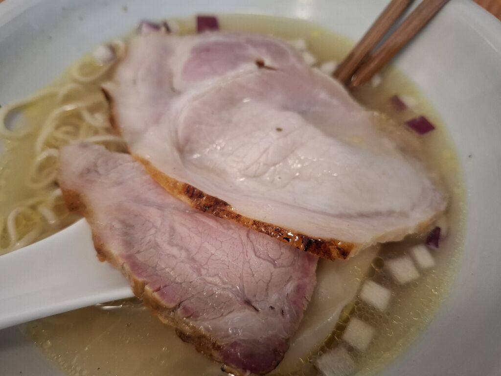 チャーシューは2種でこのくらいのボリューム感が自分には適量で、吊るしてあるのが風味良くて好きです。