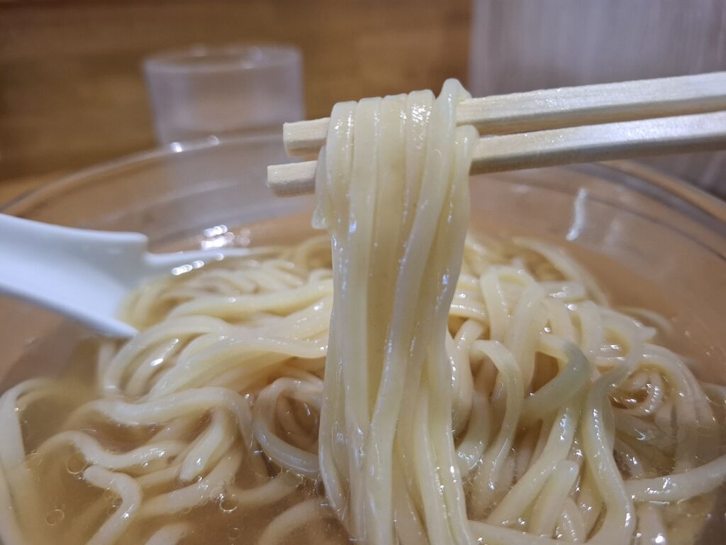 少し太目な平打ちのムッチリ麺はズルズルっとすするとスルッと入ってきてメチャクチャ美味い!