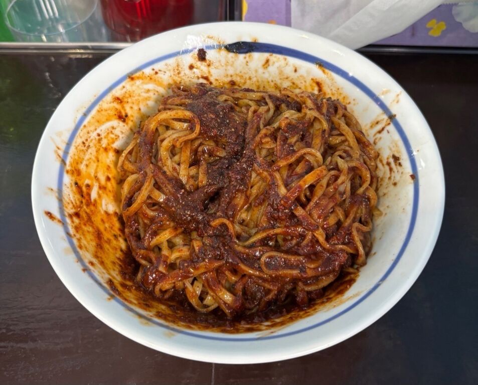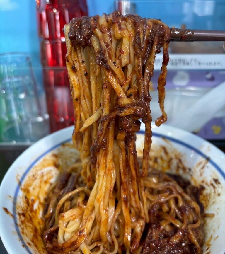 麺底から麺をそ〜っとリフトは真っ赤な色のスパイシーが大量に😂笑笑