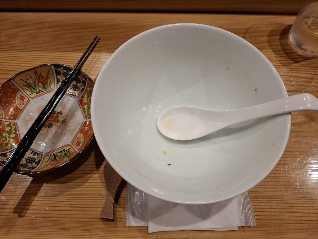 〆のスープをじっくりいただきますが、いりこがしっかりじっくり味わえました。