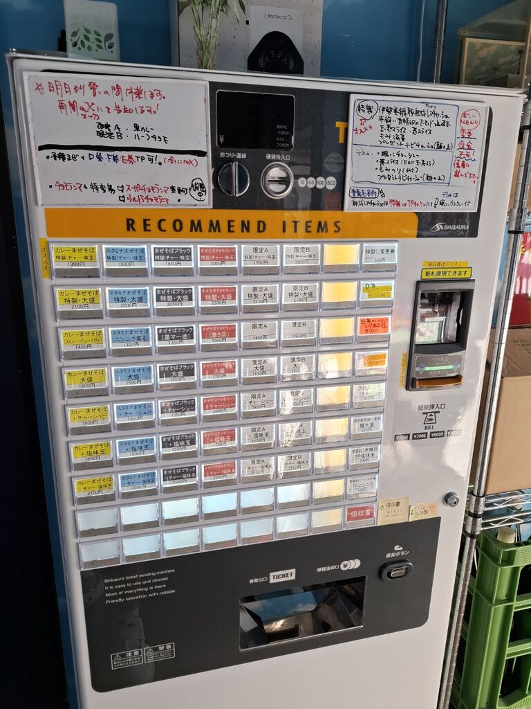 青雲志さんの券売機の一丁目一番町のメニューです。
