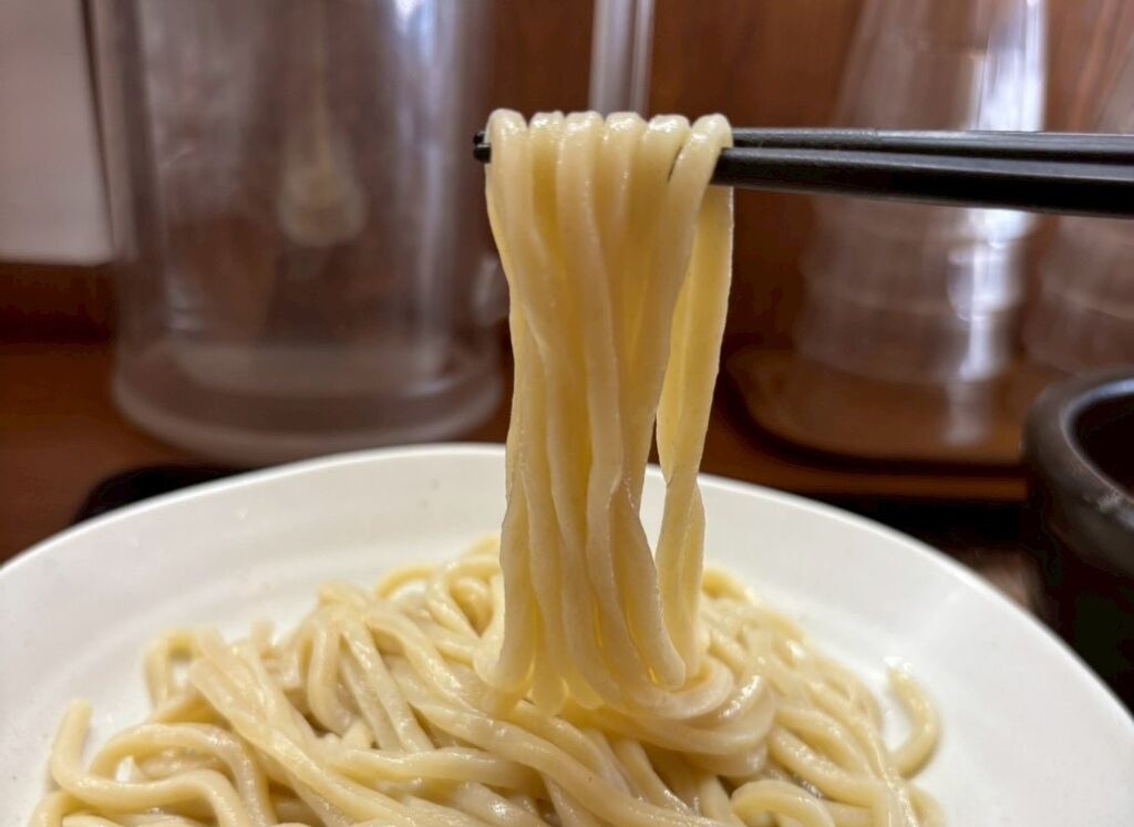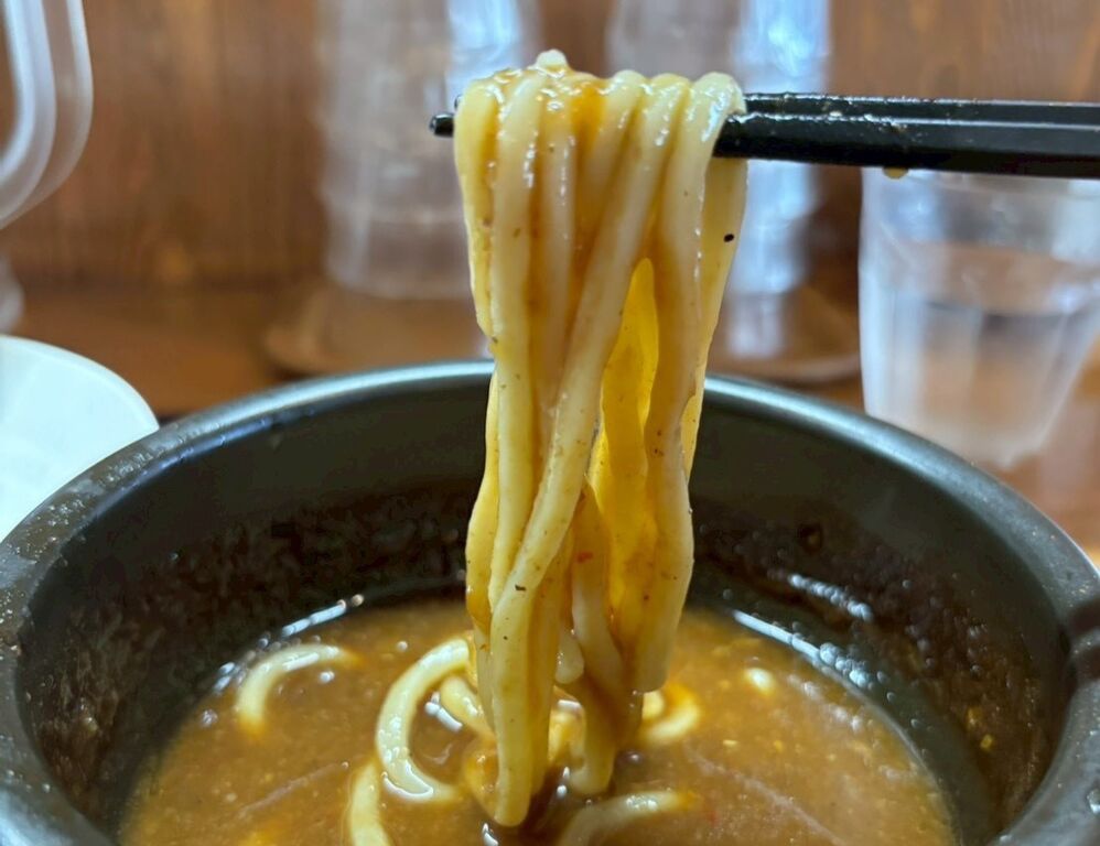 豚骨ベースに魚介の旨みと野菜が入ったドロッとした甘みのあるポタージュスープの様なつけ汁はマイルドな酸味もプラスされてめちゃくちゃ美味しいです🤤タマランネ✨