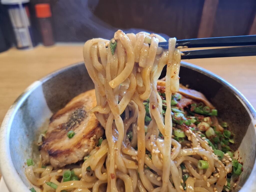 やはりピリッとしますが、味噌がかなり強いので熱々の味噌まぜそばを楽しめます!