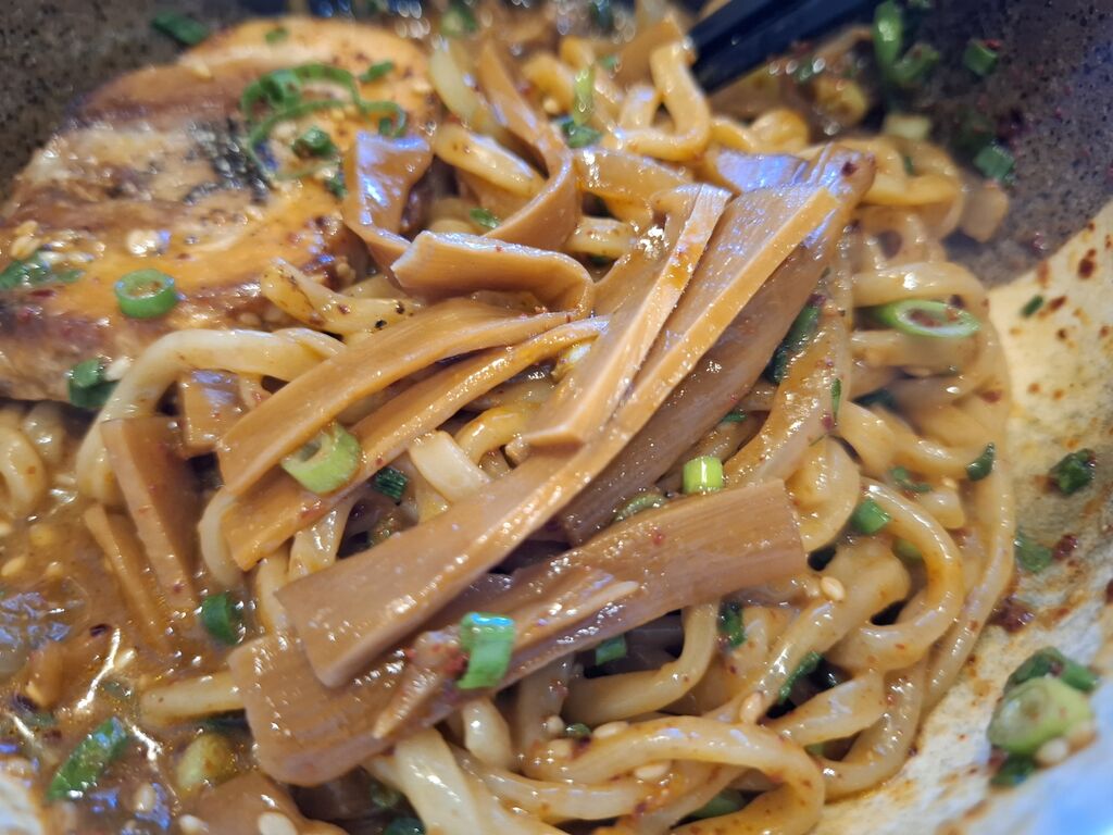 太い麺はモッチリしてて、らんまんさんのウメェ~味噌タレにたっぷり胡麻が絡んでかなり味噌を楽しめます。