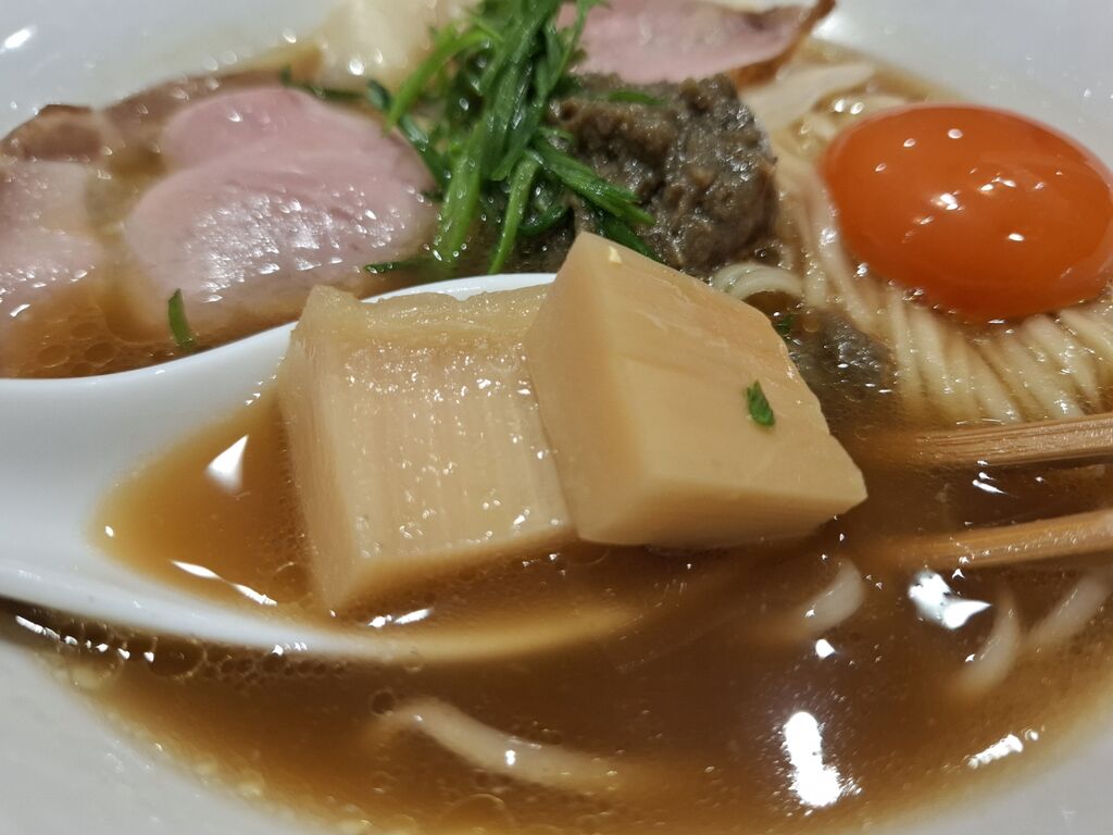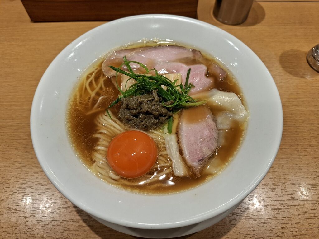 特上にしたので具材もメンマ、ワンタン、鴨チャ、豚チャに隠れてた味玉まで!!
