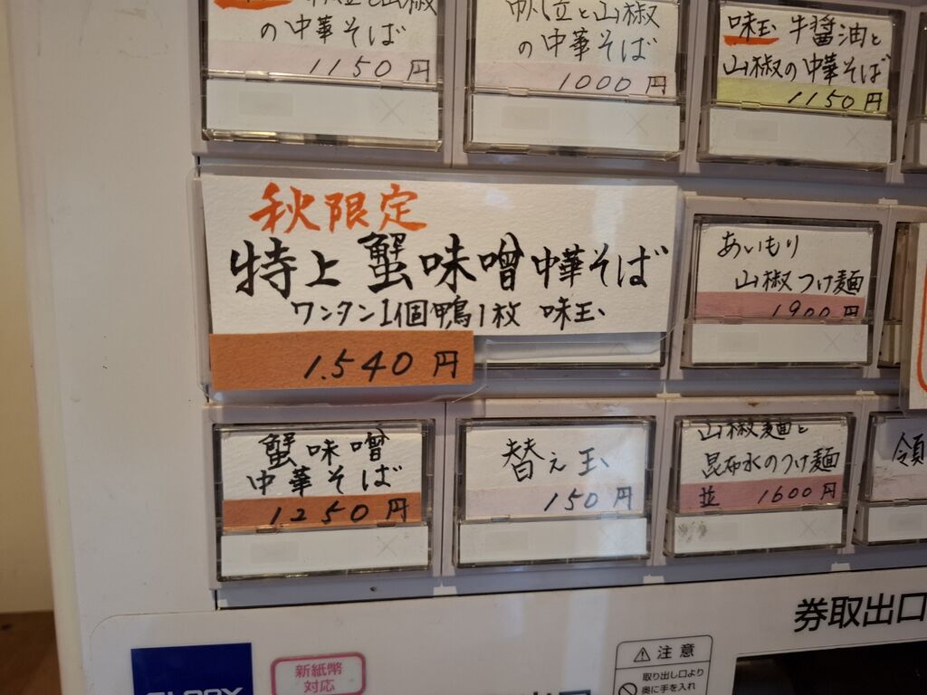 秋限定『特上蟹味噌中華そば 1540円』をプッシュです👍