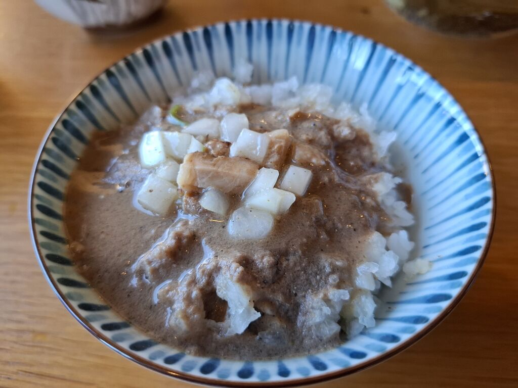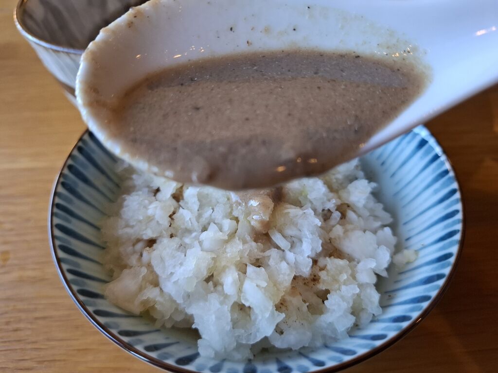 〆は大根めしに残ったつけ汁をドバッと投入!!
