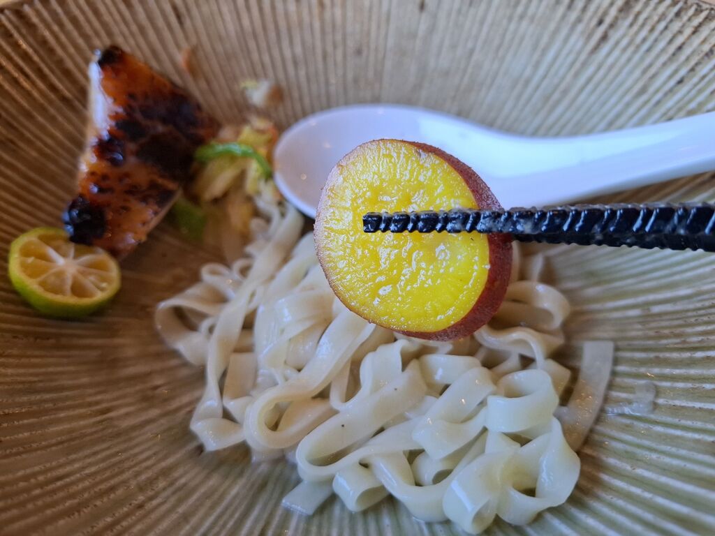 具材は炙り鶏き、浅漬け白菜、激甘なさつまいも🍠?にキノコ🍄と、㐂色さんらしさが感じれるラインナップ。