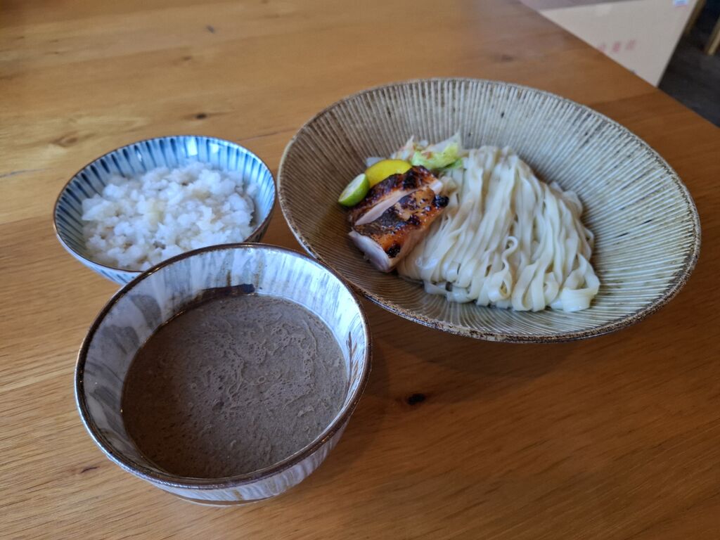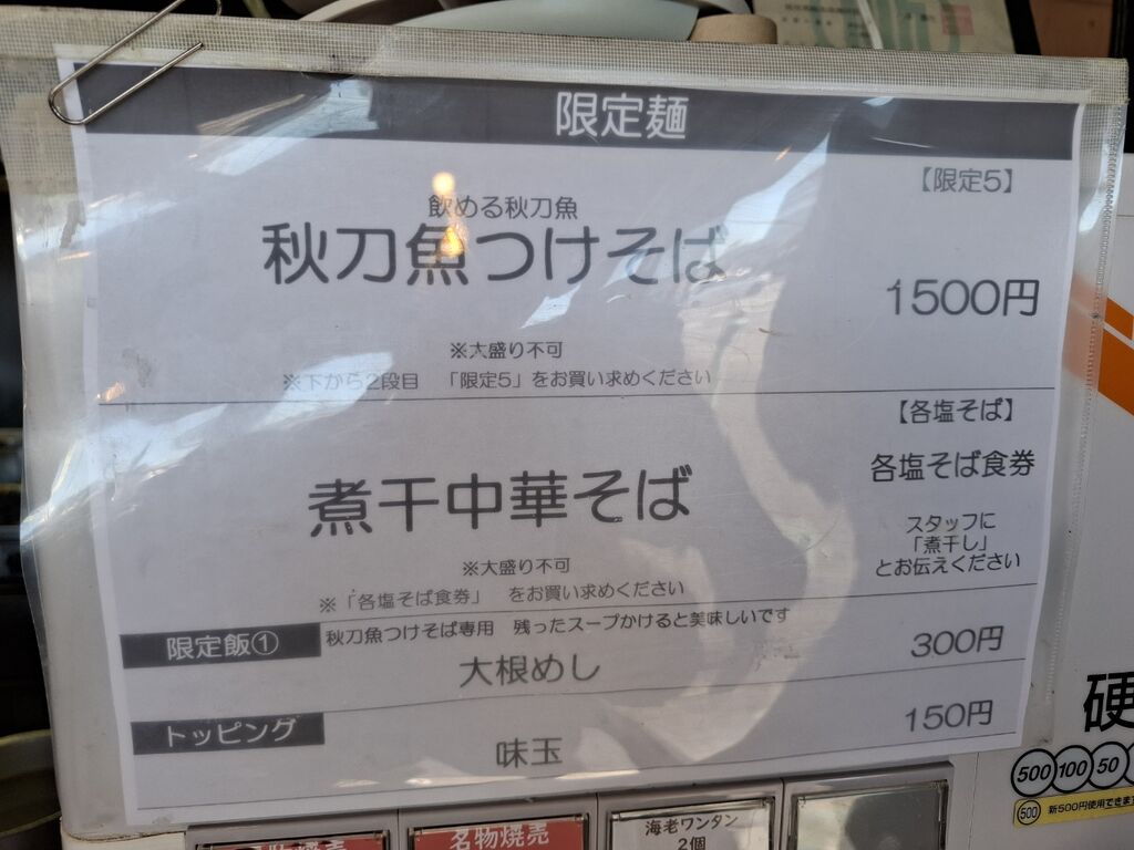 限定『秋刀魚つけそば 1500円』『大根めし 300円』を注文です🙂