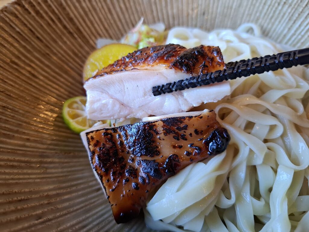 麺に絡み付いた秋刀魚ガツーンときて口の中に脂の乗った秋刀魚が游いでます🐟