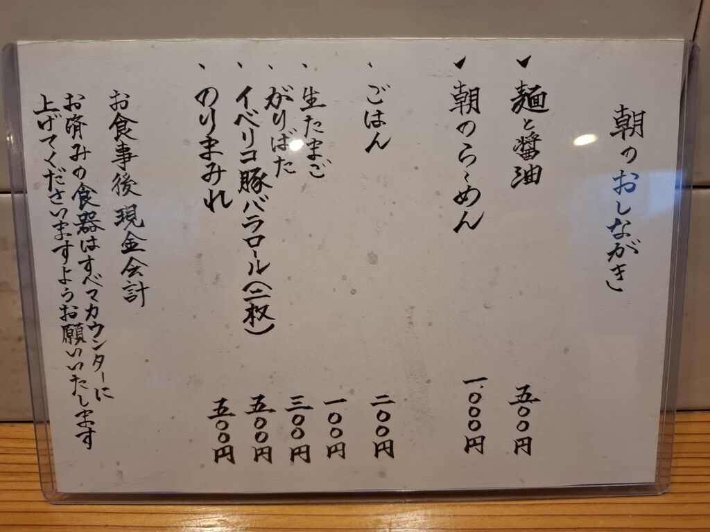 メニューは朝のおしながきの2品から"麺と醤油"をオーダーです😁☝️