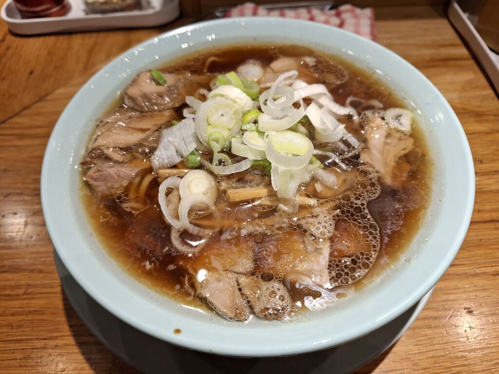 葱がたっぷり入った一杯は、ちゃん系らしいスープなみなみで綺麗な表面をしています!
