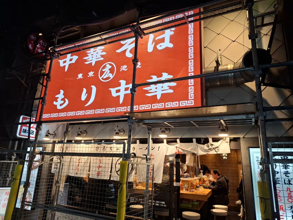 工事中のお店は赤い看板に「中華そば/もり中華」の文字がドカーンとあります!