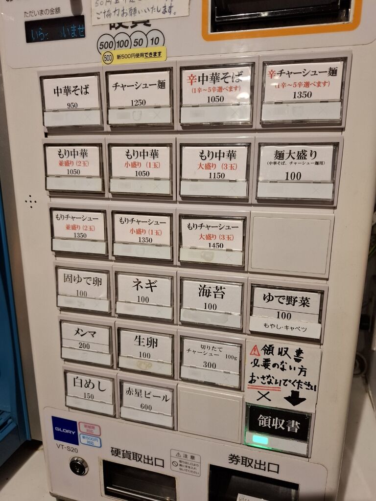 注文は券売機左上『中華そば 950円』をプッシュ