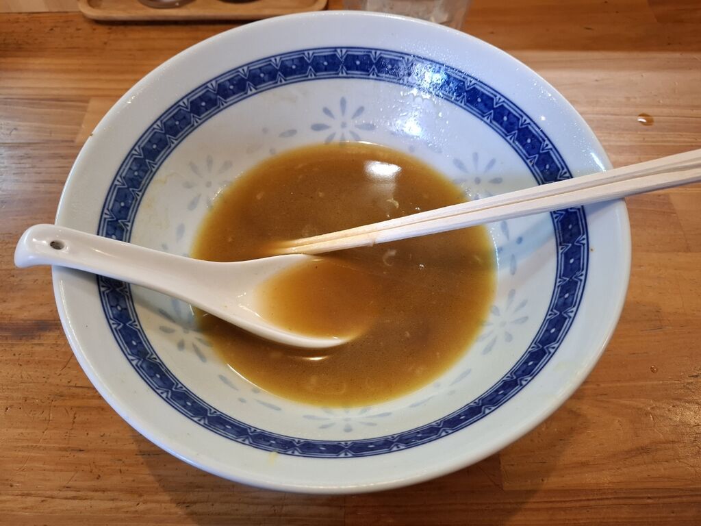 そして、〆の頃のスープはなぜか辛味があって、個人的には流石に濃すぎて飲み干すことは無理。