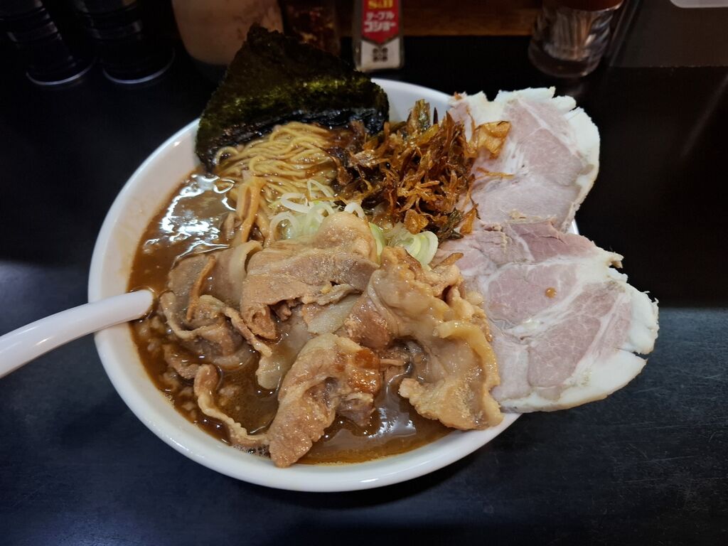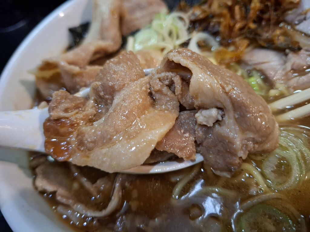 ドカーンとチャーシュー&肉が乗って、スープもしっかりと色付いか感じで、もうドキドキしますね~😮💓