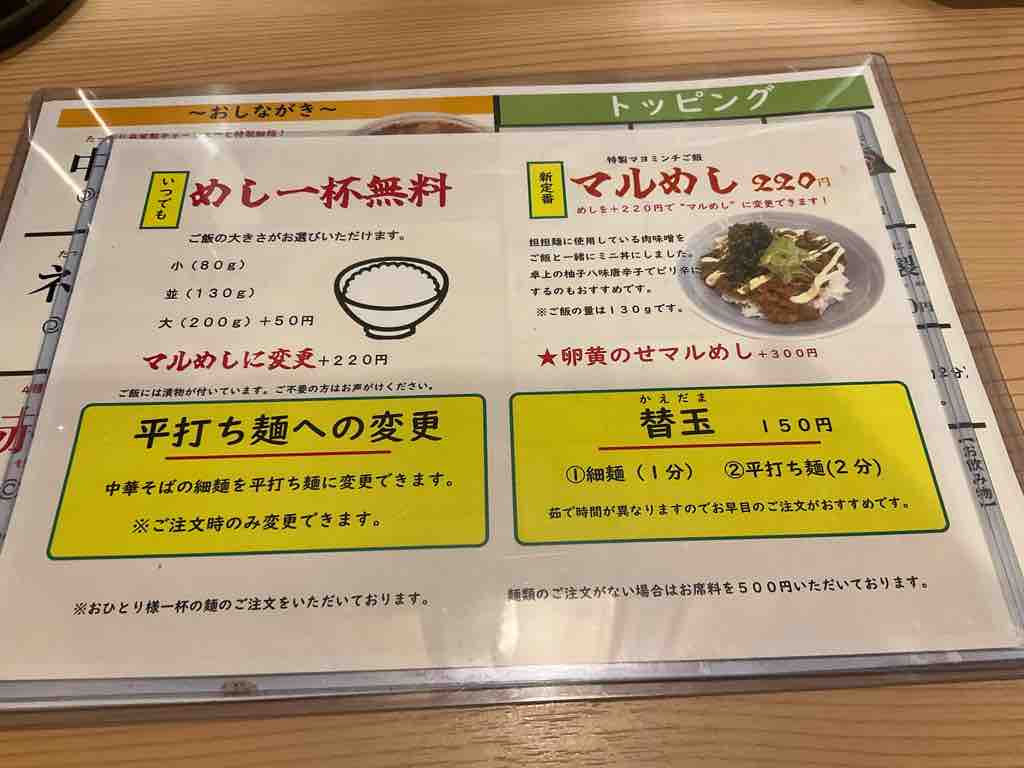 ライス無料 平打麺に変更可など気になるポップも発見