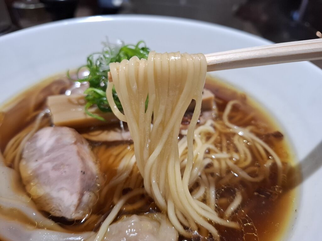 続いて麺を箸あげしてみますが、ツルプリなストレート麺は自然と口に吸い込みたくなるほどの魅力🤤