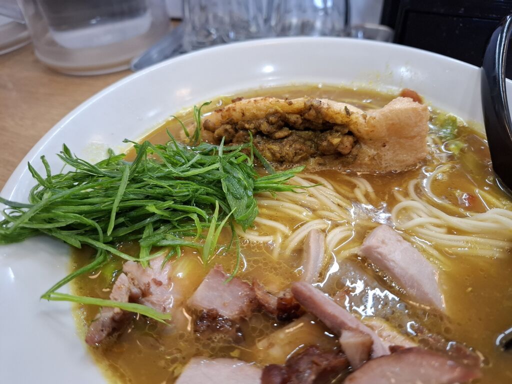 熱々のスープはトロミを感じる動物魚介系のカレースープは先日食べたカレーに比べるとパンチ👊は無いけどマイルドで美味しい🙂