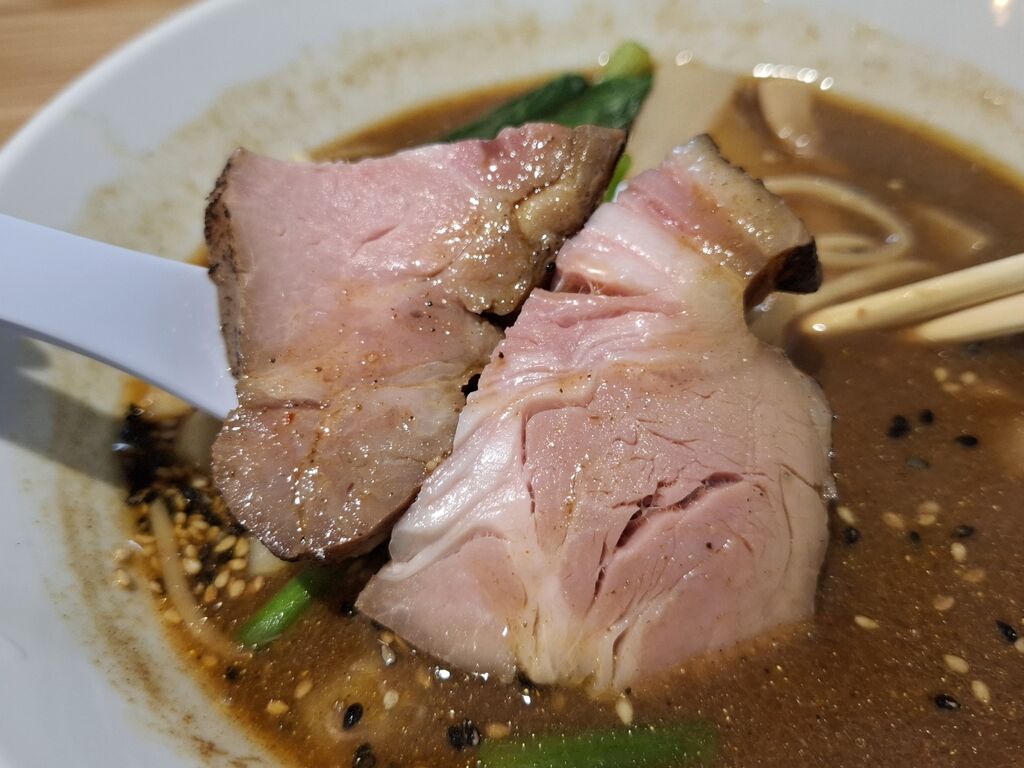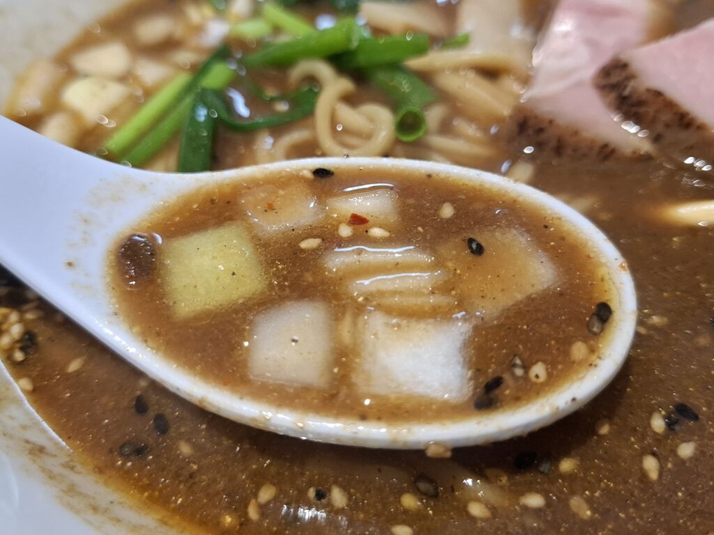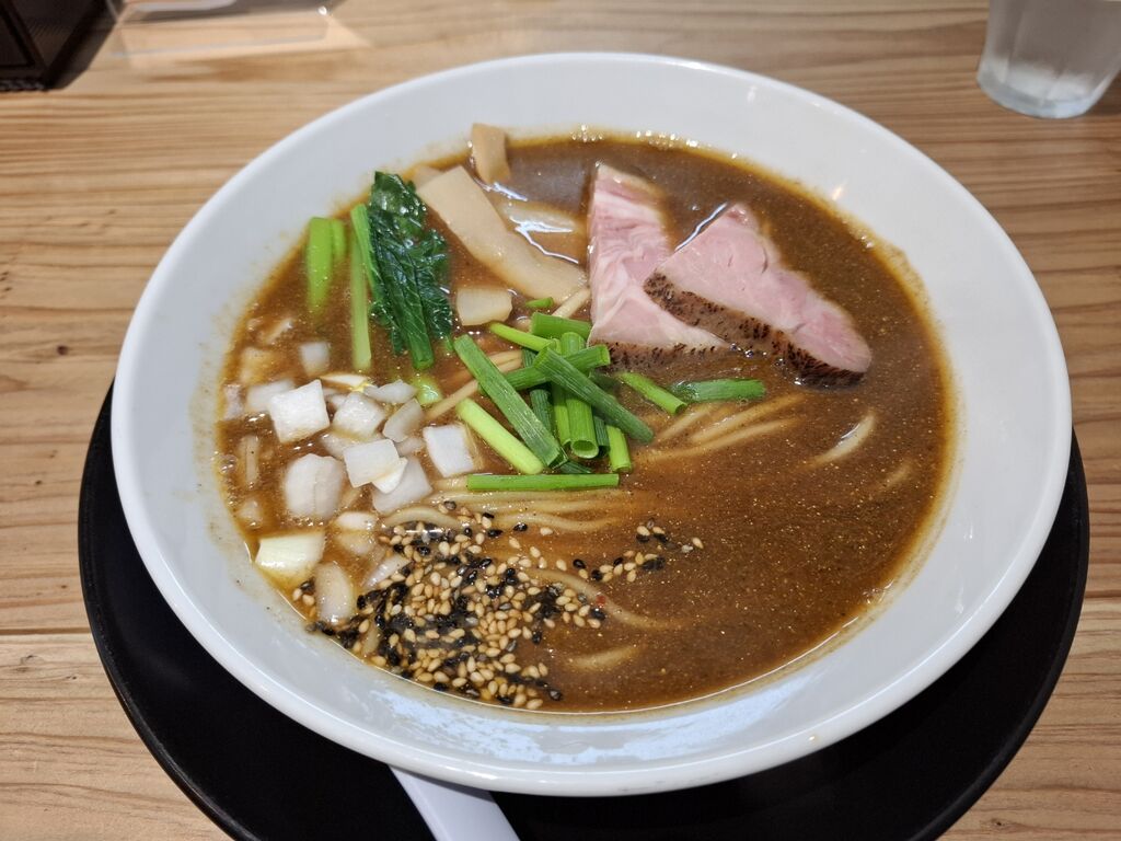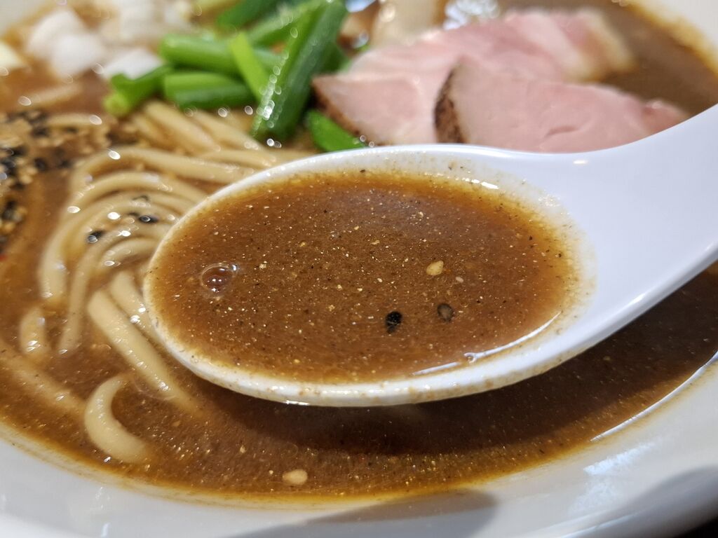 ゴマ???がまずは目に入るビジュアルで着丼です。