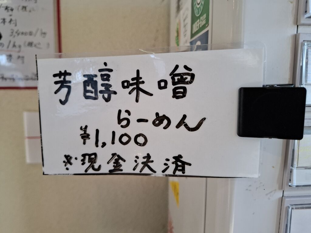 初めて食べる88さんの『芳醇味噌らーめん 1100円』と、おすすめの『味玉 150円』を現金会計です。