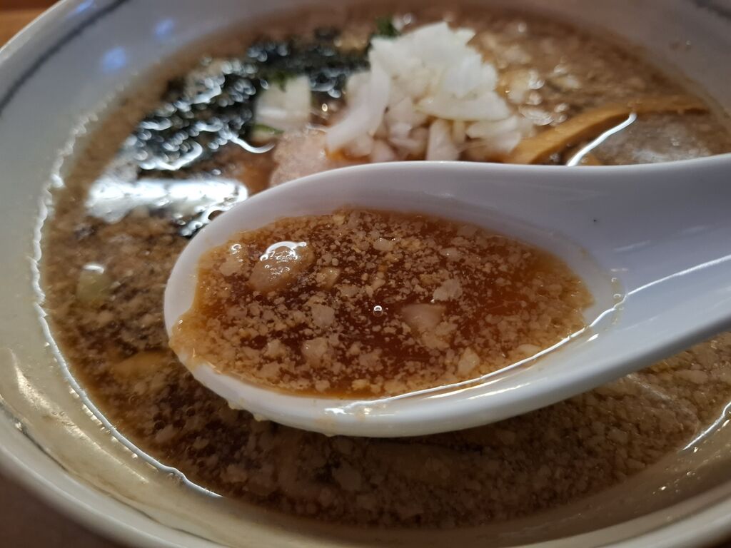 そしてスープを何杯か飲むと生の玉葱もレンゲに混ざるり刺激が加わってまた美味い!