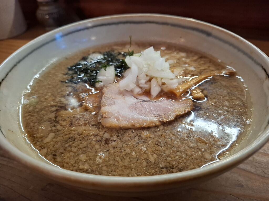 品名の通り、脂の浮いた煮干しスープで醤油のコクに加え、背脂の甘味と深みのあるニボニボ感を同時に味わえます。