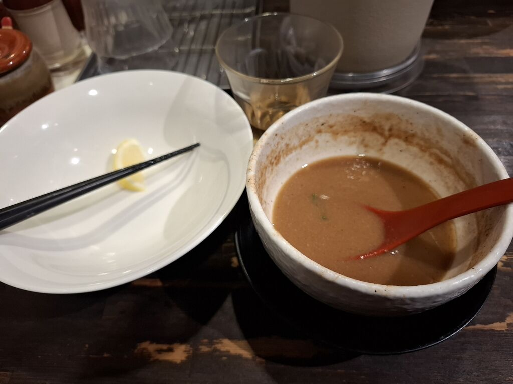 この日ラストにて、一番濃厚なつけ汁が着丼しています。