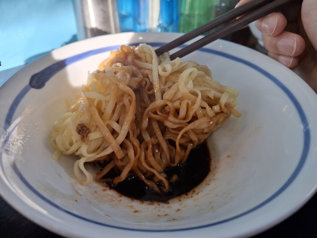 天地をグリグリひっくり返し、麺にテカテカ✨黒油が絡んだところで、ズルズルっと啜ります。